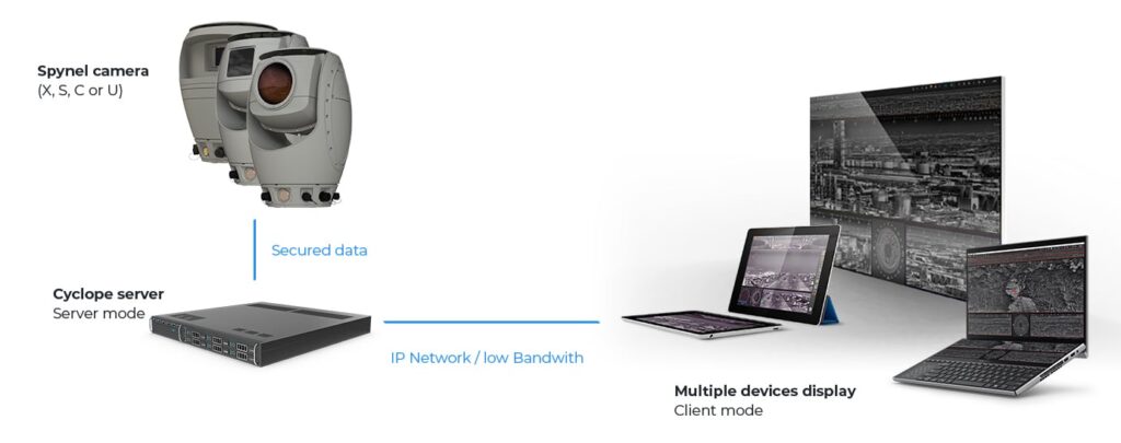 La potenza dei sensori SPYNEL si esprime pienamente attraverso Cyclope, il software avanzato di rilevamento automatico delle intrusioni che analizza in tempo reale i flussi video panoramici a 360°.