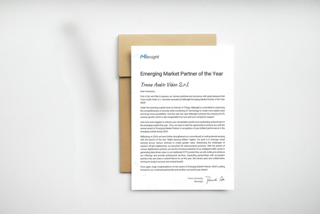 Trans Audio Video si è aggiudicata l’Award “Emerging Market Partner 2024” di Milesight Security